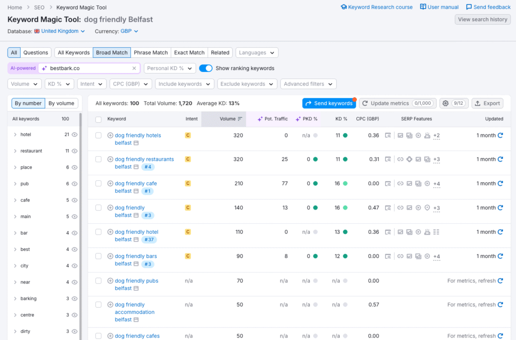 - A generic keyword might be “dog friendly Belfast..”